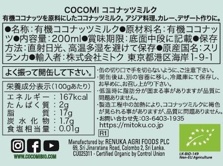 有機ココナッツの胚乳を圧搾した、増粘剤不使用のココナッツミルク。デザートやお料理に幅広くご利用いただけます。
