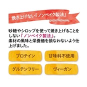 栄養価を損なわず、素材本来の味わいを生かす、焼き上げない「ノンベイク製法」で仕上げています。甘味料不使用で、穀物とドライフルーツの自然な甘みと風味が楽しめ、大粒のナッツと甘酸っぱいベリーがアクセントになる食べごたえです。