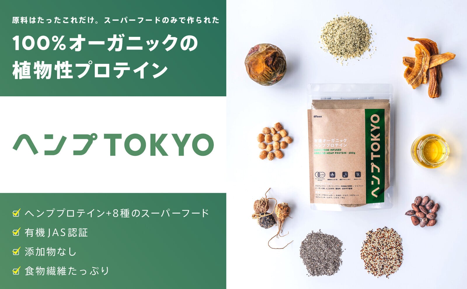 ヘンプTOKYOはJAS認証を取得している、添加物ゼロのオーガニックプロテインです。タンパク質源としてヘンプシードを使用し、加えて他の8種のスーパーフードとブレンドすることにより、化学合成されたプロテインに負けない栄養バランスを実現しています。