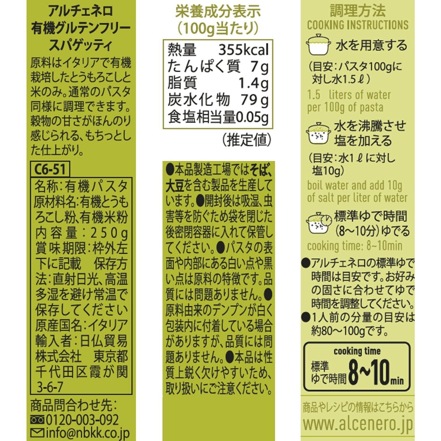 【アルチェネロ】オーガニック グルテンフリー・スパゲッティ