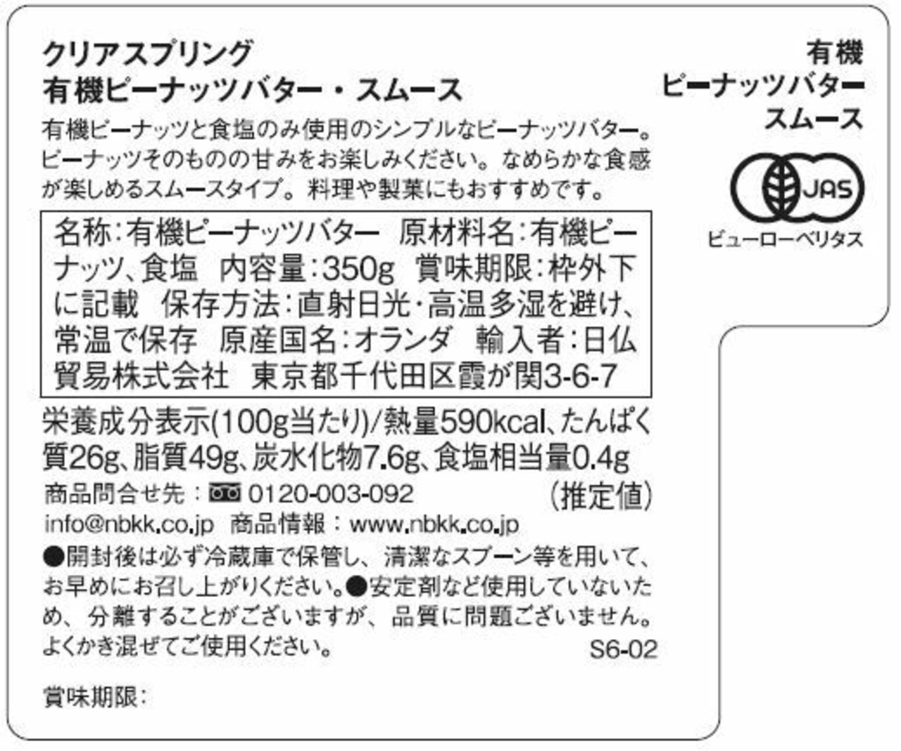 有機ピーナッツと食塩のみ使用のシンプルなピーナッツバター。