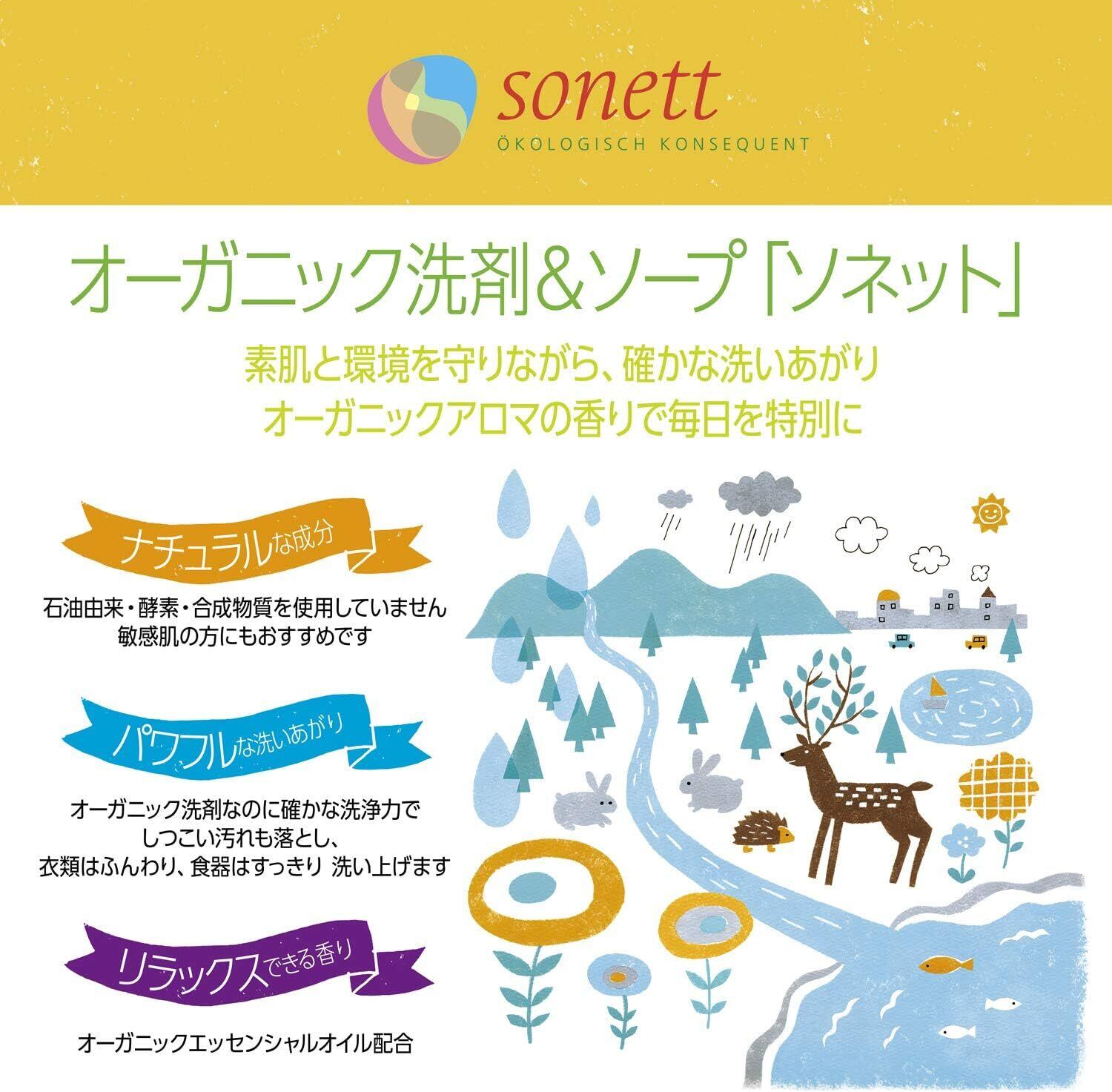 洗浄力はそのままに、人と環境にやさしい生分解性の高い洗剤を作ることをめざし、科学者達が設立したソネット社。オーガニック栽培の植物や天然の鉱物、独自の製法で生命力を与えた水、本物のエッセンシャルオイルなどから作られるソネットの洗剤は、洗剤自らの力で完全に自然に戻ることが証明されています。