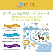 洗浄力はそのままに、人と環境にやさしい生分解性の高い洗剤を作ることをめざし、科学者達が設立したソネット社。オーガニック栽培の植物や天然の鉱物、独自の製法で生命力を与えた水、本物のエッセンシャルオイルなどから作られるソネットの洗剤は、洗剤自らの力で完全に自然に戻ることが証明されています。