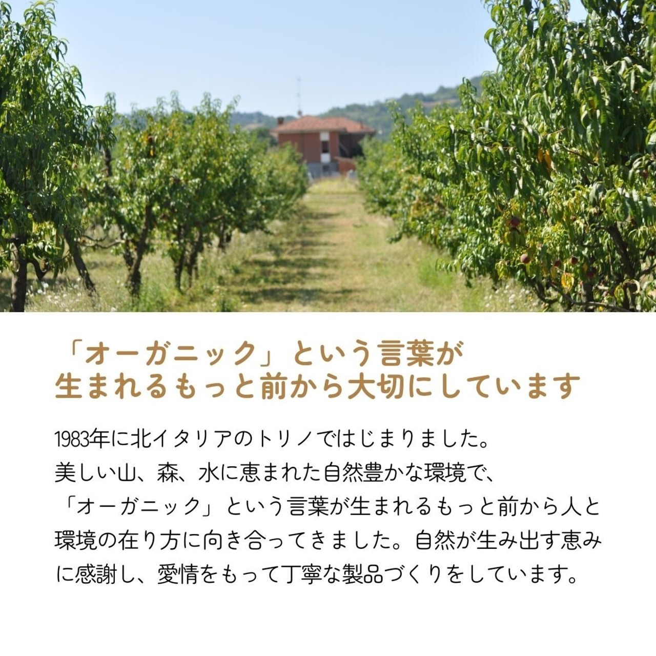 イタリア全土の適した土地、環境でそれぞれのスペシャリストによって栽培されたオーガニックフルーツは高品質で安定した生産を可能にしています。伝統的なレシピを尊重しイタリアにて加工を行い信頼と安心をこれからもお届けすることを第一に取り組んでいます。