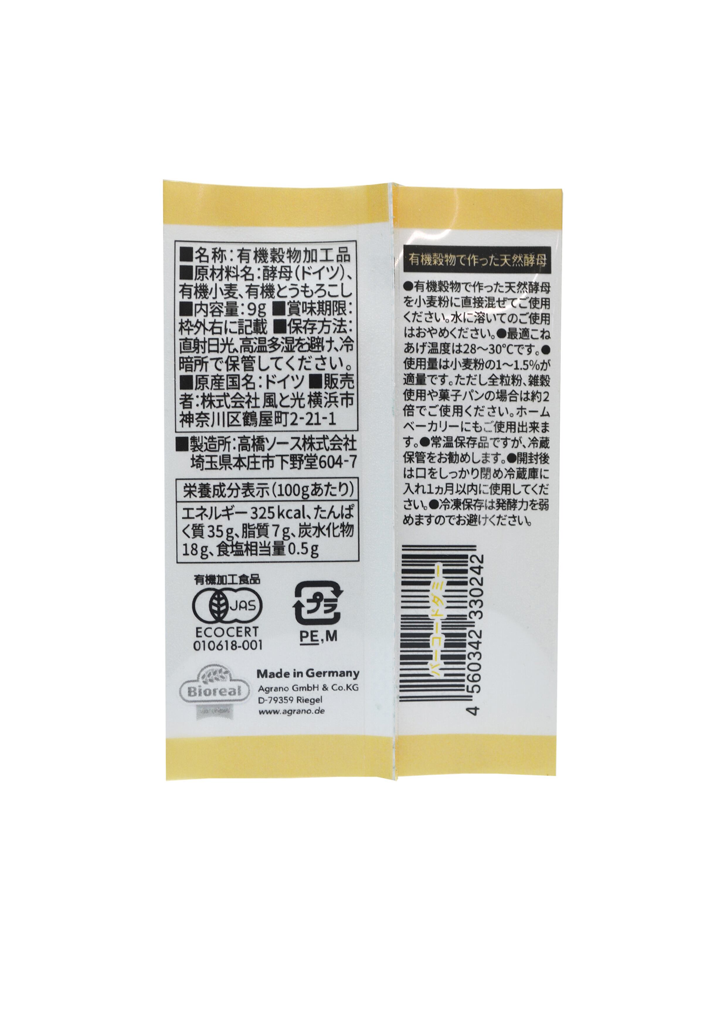 酵母を有機穀物を栄養源にして、オーガニックの栄養素で育てたドライイーストタイプの天然酵母です。