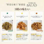 「THIS IS SALAD」は、茨城県の農業生産法人が手掛ける国産オーガニックジュースの残渣※3を用いており、この農場での野菜栽培から自社工場での優しく絞った生産まで一貫体制にのっとったこだわりのジュースの搾りかすには、食物繊維など沢山の栄養価が期待できます。これらのお野菜の部分を余すことなく多くの人に食べていただきたい、というベルファームの皆様の想いから商品開発がスタートいたしました。