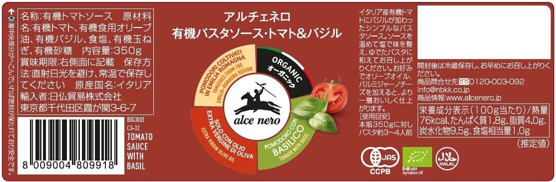 ポー州デルタ地帯(エミリア・ロマーニャ州とヴェネト州の間)の肥沃な大地で育った有機トマトを収穫後12時間以内に加工したパスタソース。