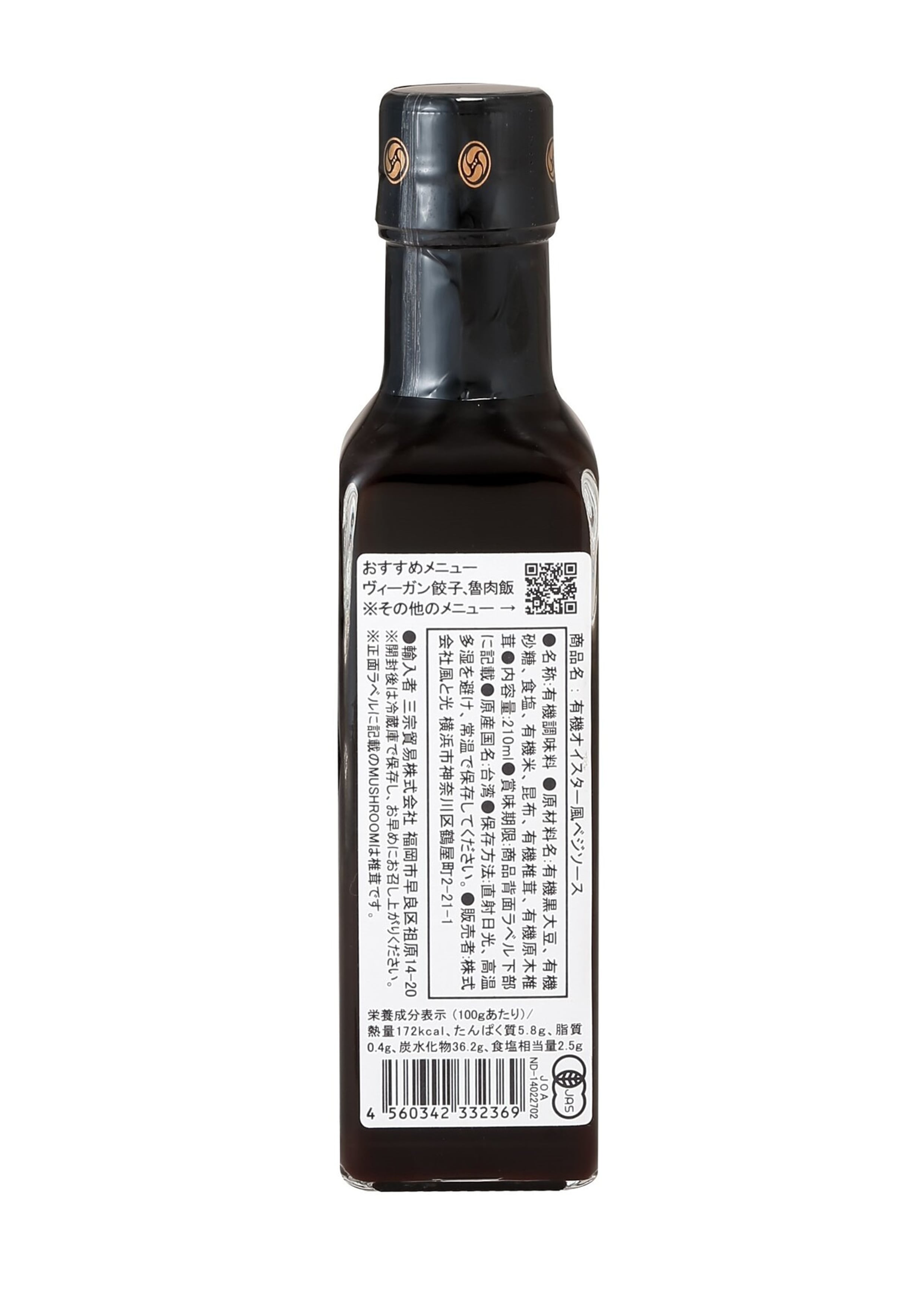 グルテンフリー・ベジタリアン対応で楽しめる有機JAS認証のオイスター風ソースです。