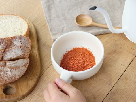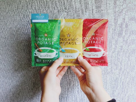 ■原材料:有機トマトペースト(米国製造)、有機豆乳、有機にんじんペースト、有機カーネルコーン、有機黒糖、有機ポテトフレーク、食塩、白こしょう、有機発酵野菜粉末、有機でん粉、(一部に大豆を含む)
