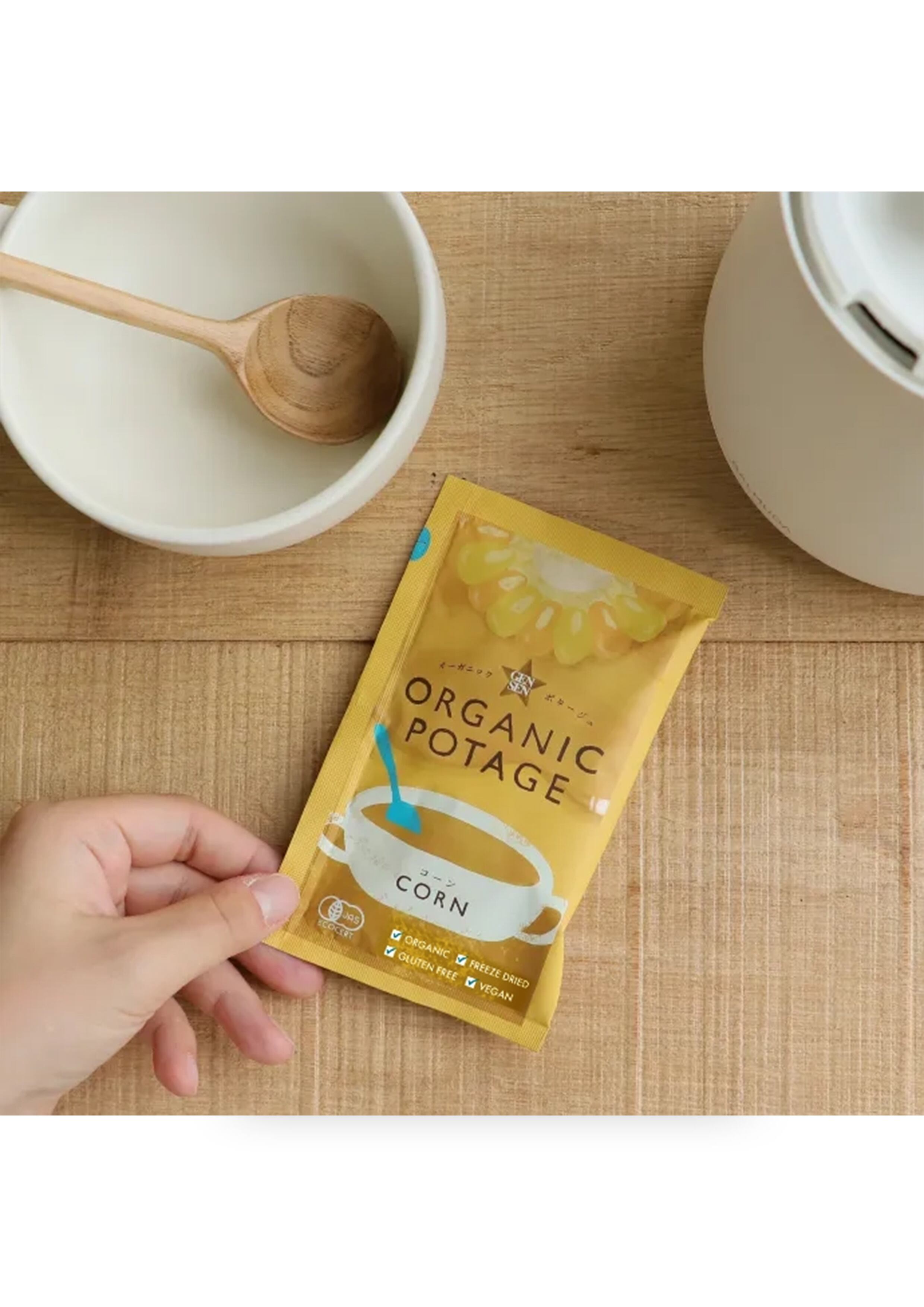 ■原材料:有機カーネルコーン(ハンガリー製造)、有機豆乳、有機黒糖、食塩、有機ポテトフレーク、有機でん粉、白こしょう、有機発酵野菜粉末、(一部に大豆を含む)