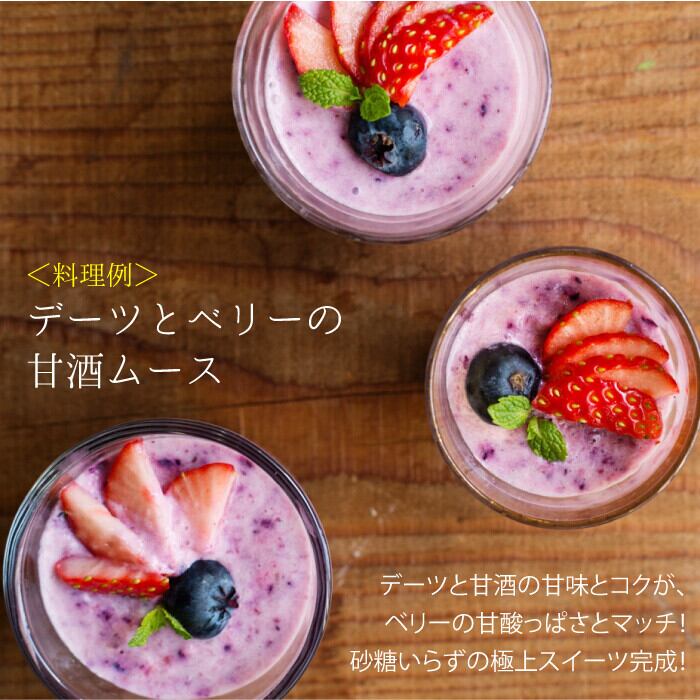 植物性100%。砂糖・着色料など、一切不使用。樹上完熟させた無農薬のデーツから、沸騰させることなく、丁寧に抽出しました。くせがなく、和食の隠し味からスイーツづくりまで、あらゆる料理に使えます。