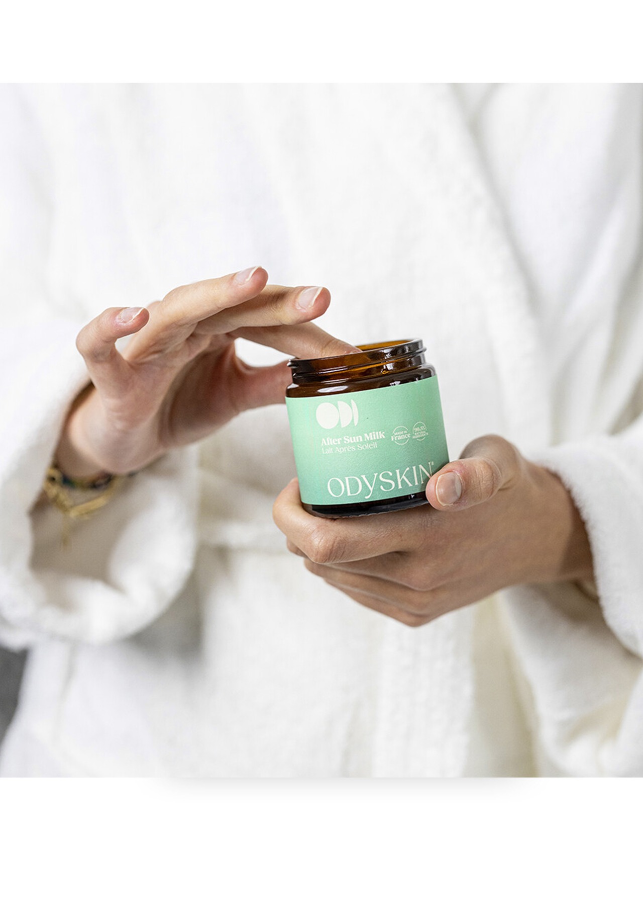 オディスキンのパッケージは、廃棄物を出さないように設計されており、可能な限りプラスチック素材を避けています。日焼け止めはアルミニウムのチューブに入っており、無限かつ簡単にリサイクル可能です。アフターサンは、ガラス瓶にパッケージされており、すべての箱は家庭で堆肥化できます。オディスキンは、人にとっても地球にとっても良いものです。