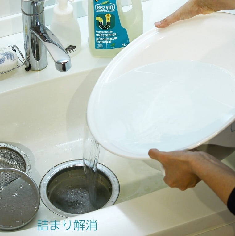 塩素などバクテリアを死滅させてしまう恐れのある洗剤が使えない浄化槽やディスポーザーでもeezymは安心してお使いいただけます。