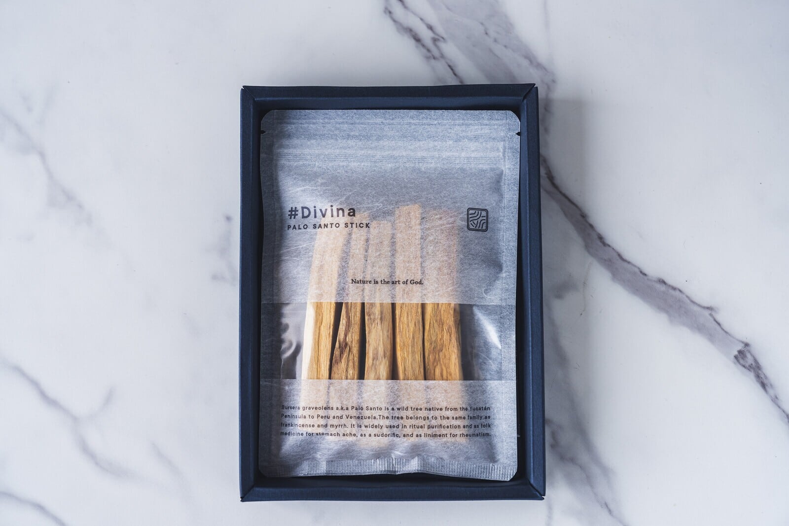 パロサント(Palo Santo)はスペイン語で「聖なる木」を意味します。主な産地は、南アメリカと中央アメリカの一部の地域で、#Divinaはペルー産の原木を使用しています。かつてはラテンアメリカの先住民たちが「神の樹」と呼び、 魔除けとして使用されてきた香木でが、現代ではその香り高さから、 NY周辺のファッション業界やヨガインストラクターなど、 サステナブルなライフスタイルに感度の高い人々から注目を集めています。希少性が高く、濃厚な香りを放ちながら空間を演出する、今話題の リラクゼーションアイテムです。